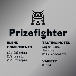 Prizefighter is the coffee that steps in when you need something lively, layered, and ready for round two. It's silky and composed, light-medium bodied, and nutty with mild citrus notes and soft florals.