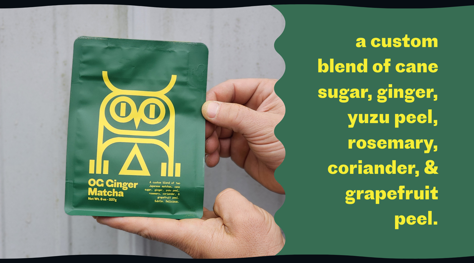 OG Blend: Our housemade blend of a traditional Japanese matcha, ginger, yuzu peel, rosemary, coriander, and grapefruit. Citrusy with a little kick!